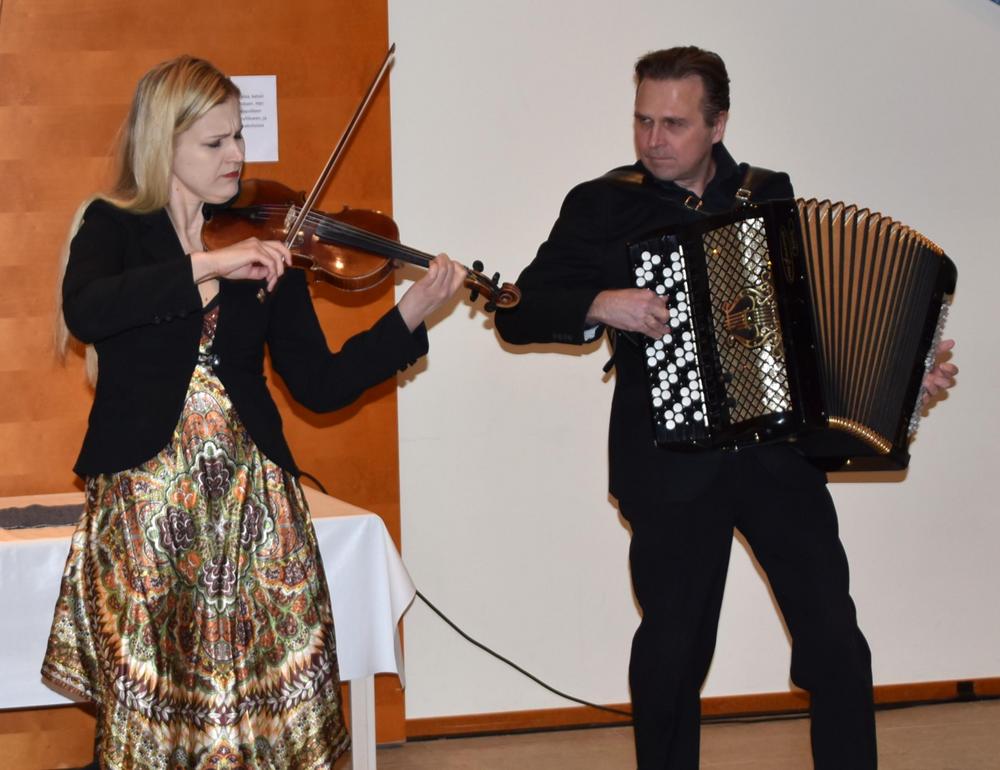 Tilaisuuden lopuksi meille esiintyivät Finngips-duon harmonikkataiteilija Sami Varvio ja viulisti Eeva Oksala. Saimme kuunnella heidän virtuoosimaista soittoa usean kappaleen verran. Esitys oli todella hyvä ja sai kuuntelijan jalan vipattamaan.